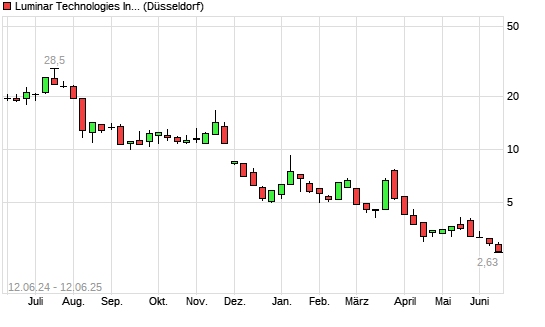 Mit dem Rücksetzer auf 2,84 EUR hat die Luminar Technologies-Aktie (ISIN US5504243032) am 11.06.2025 ein neues All-Time-Low erreicht und damit den Kurs vom 05.06.2025 eingestellt.
