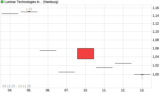Mit dem Rücksetzer auf 0,99 EUR hat die Luminar Technologies-Aktie (ISIN US5504243032) am 12.11.2025 ein neues All-Time-Low erreicht und damit den Kurs vom 31.10.2025 eingestellt.