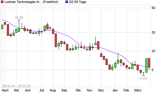 Mit dem Anstieg auf 5,61 EUR hat die Luminar Technologies-Aktie am 27.03.2025 die 50-Tage-Linie nach oben gekreuzt.