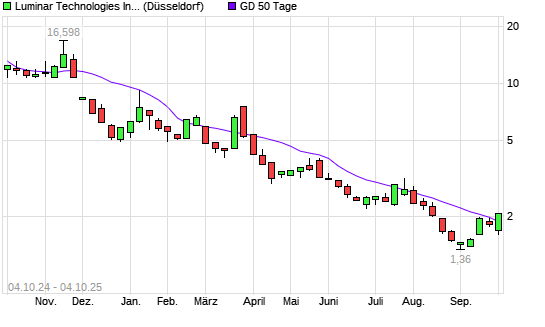 Mit dem Anstieg auf 2,01 EUR hat die Luminar Technologies-Aktie am 03.10.2025 die 50-Tage-Linie nach oben gekreuzt.