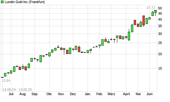 Mit dem Anstieg auf 47,50 EUR hat die Lundin Gold-Aktie (ISIN CA5503711080) am 13.06.2025 ein neues All-Time-High erreicht und damit den Kurs vom 06.06.2025 eingestellt.