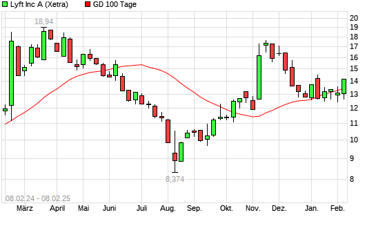 Mit dem Anstieg auf 14,20 EUR hat die Lyft-Aktie am 07.02.2025 die 100-Tage-Linie nach oben gekreuzt.