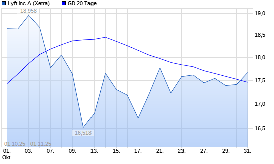 Mit dem Anstieg auf 17,39 EUR hat die Lyft-Aktie am 31.10.2025 die 20-Tage-Linie nach oben gekreuzt.