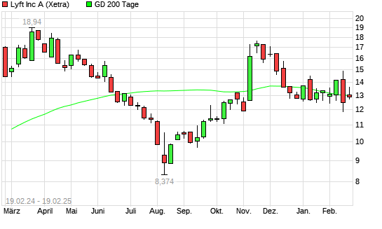 Mit dem Anstieg auf 13,34 EUR hat die Lyft-Aktie am 18.02.2025 die 200-Tage-Linie nach oben gekreuzt.