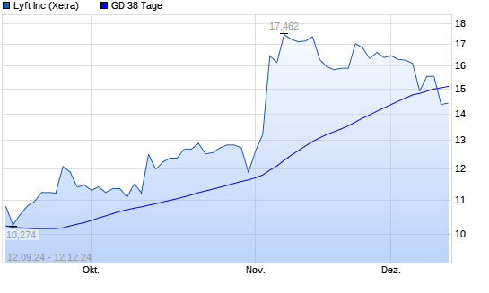 Mit dem Rücksetzer auf 14,25 EUR hat die Lyft-Aktie am 11.12.2024 die 38-Tage-Linie nach unten gekreuzt.