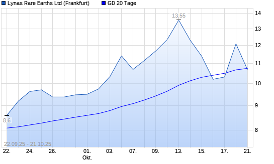 Mit dem Anstieg auf 12,10 EUR hat die Lynas-Aktie am 20.10.2025 die 20-Tage-Linie nach oben gekreuzt.