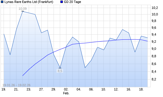 Mit dem Anstieg auf 9,36 EUR hat die Lynas-Aktie am 18.02.2026 die 20-Tage-Linie nach oben gekreuzt.