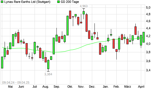 Mit dem Anstieg auf 4,19 EUR hat die Lynas-Aktie am 08.04.2025 die 200-Tage-Linie nach oben gekreuzt.