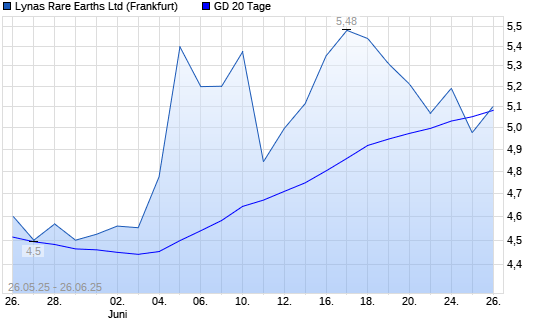 Mit dem Rücksetzer auf 4,98 EUR hat die Lynas-Aktie am 25.06.2025 die 20-Tage-Linie nach unten gekreuzt.