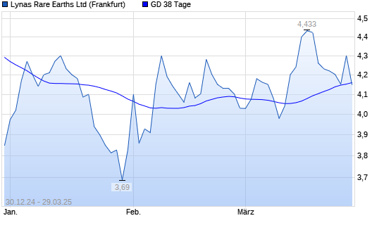 Mit dem Rücksetzer auf 4,15 EUR hat die Lynas-Aktie am 28.03.2025 die 38-Tage-Linie nach unten gekreuzt.