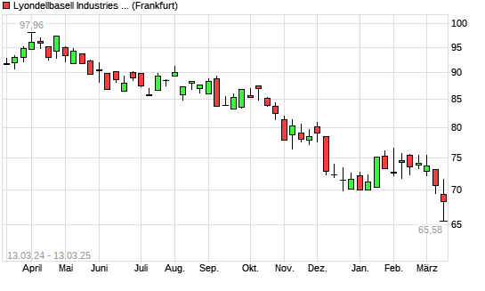 Mit dem Rücksetzer auf 65,94 EUR hat die Lyondellbasell Industries-Aktie (ISIN NL0009434992) am 12.03.2025 ein neues 3-Jahres-Tief erreicht und damit den Kurs vom 11.03.2025 eingestellt.