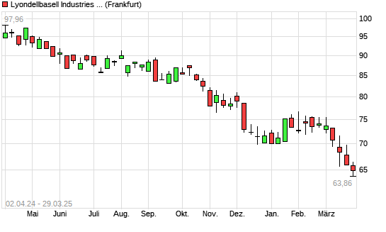 Mit dem Rücksetzer auf 64,80 EUR hat die Lyondellbasell Industries-Aktie (ISIN NL0009434992) am 28.03.2025 ein neues 3-Jahres-Tief erreicht und damit den Kurs vom 25.03.2025 eingestellt.