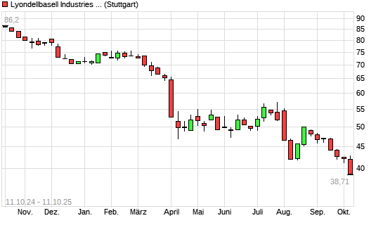 Mit dem Rücksetzer auf 38,99 EUR hat die Lyondellbasell Industries-Aktie (ISIN NL0009434992) am 10.10.2025 ein neues 5-Jahres-Tief erreicht und damit den Kurs vom 30.09.2025 eingestellt.