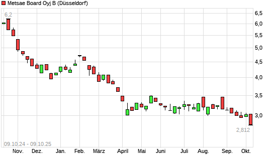 Mit dem Rücksetzer auf 2,80 EUR hat die M-Real-Aktie (ISIN FI0009000665) am 08.10.2025 ein neues 10-Jahres-Tief erreicht und damit den Kurs vom 07.10.2025 eingestellt.