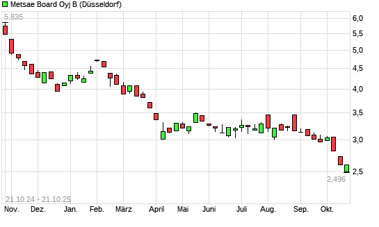 Mit dem Rücksetzer auf 2,57 EUR hat die M-Real-Aktie (ISIN FI0009000665) am 20.10.2025 ein neues 10-Jahres-Tief erreicht und damit den Kurs vom 17.10.2025 eingestellt.