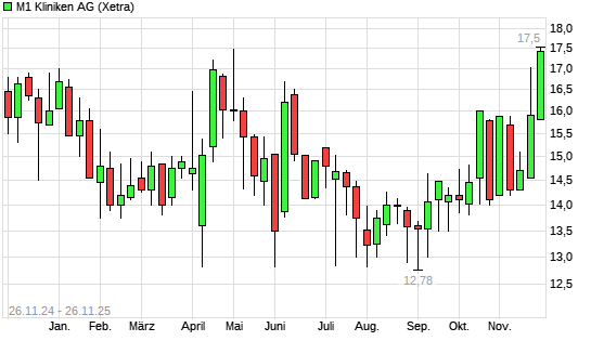 Mit dem Anstieg auf 17,02 EUR hat die M1 Beauty-Aktie (ISIN DE000A0STSQ8) am 25.11.2025 ein neues 12-Monats-Hoch erreicht und damit den Kurs vom 11.12.2024 eingestellt.
