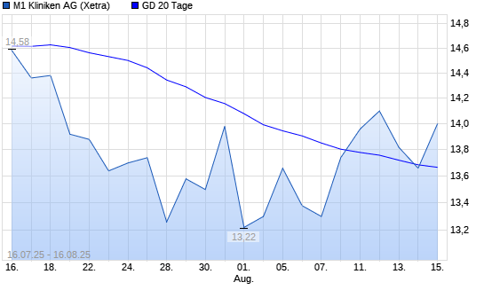 Mit dem Rücksetzer auf 13,54 EUR hat die M1 Beauty-Aktie am 15.08.2025 die 20-Tage-Linie nach unten gekreuzt.