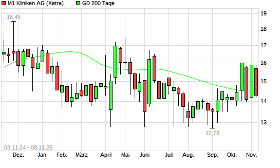 Mit dem Rücksetzer auf 14,36 EUR hat die M1 Beauty-Aktie am 07.11.2025 die 200-Tage-Linie nach unten gekreuzt.