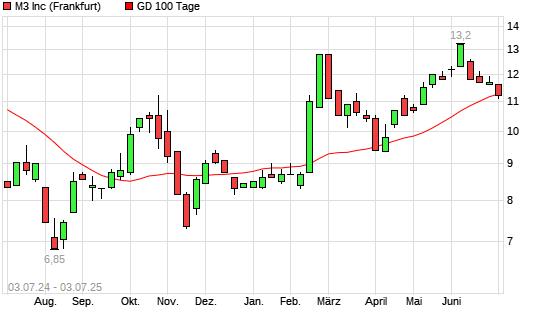 Mit dem Anstieg auf 11,30 EUR hat die M3-Aktie am 02.07.2025 die 100-Tage-Linie nach oben gekreuzt.