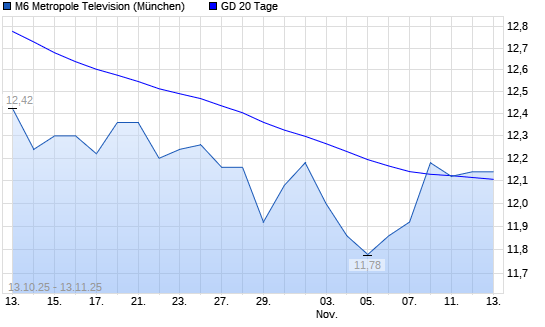 Mit dem Anstieg auf 12,08 EUR hat die M6 Metropole Television-Aktie am 12.11.2025 die 20-Tage-Linie nach oben gekreuzt.