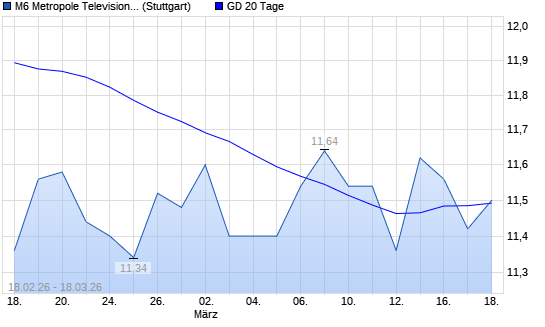 Mit dem Rücksetzer auf 11,42 EUR hat die M6 Metropole Television-Aktie am 17.03.2026 die 20-Tage-Linie nach unten gekreuzt.