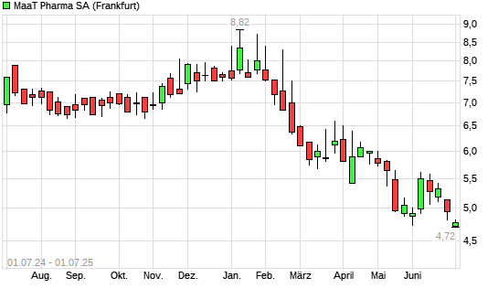 Mit dem Rücksetzer auf 4,80 EUR hat die MAAT PHARMA-Aktie (ISIN FR0012634822) am 30.06.2025 ein neues 12-Monats-Tief erreicht und damit den Kurs vom 25.06.2025 eingestellt.