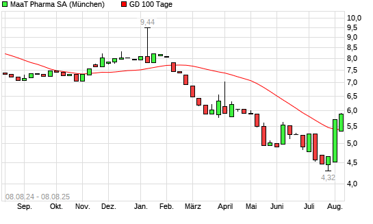 Mit dem Anstieg auf 5,62 EUR hat die MAAT PHARMA-Aktie am 07.08.2025 die 100-Tage-Linie nach oben gekreuzt.