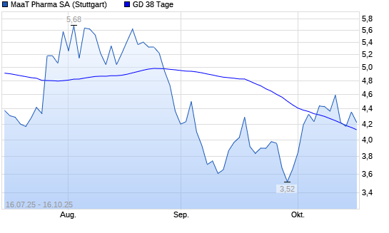 Mit dem Anstieg auf 4,16 EUR hat die MAAT PHARMA-Aktie am 15.10.2025 die 38-Tage-Linie nach oben gekreuzt.