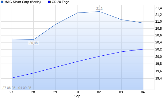 Mit dem Rücksetzer auf 21,22 EUR hat die MAG Silver Corp.-Aktie am 26.09.2025 die 20-Tage-Linie nach unten gekreuzt.