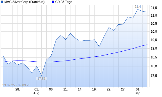 Mit dem Rücksetzer auf 21,22 EUR hat die MAG Silver Corp.-Aktie am 22.10.2025 die 38-Tage-Linie nach unten gekreuzt.