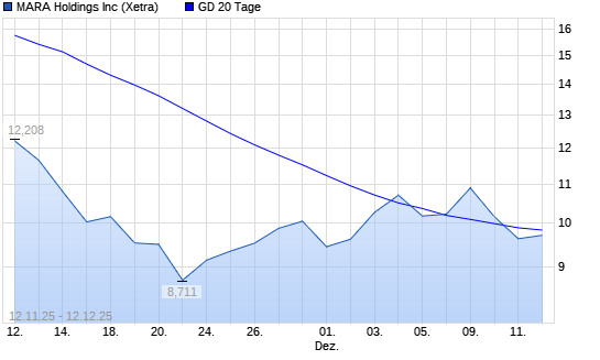 Mit dem Rücksetzer auf 9,70 EUR hat die MARA Holdings-Aktie am 11.12.2025 die 20-Tage-Linie nach unten gekreuzt.