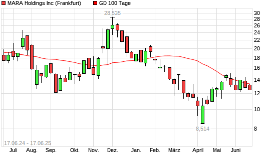 Mit dem Anstieg auf 13,26 EUR hat die Marathon Digital-Aktie am 16.06.2025 die 100-Tage-Linie nach oben gekreuzt.Die Marathon Digital-Aktie befindet sich seit dem 31.01.2025 im langfristigen ...weiterlesen