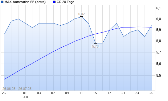 Mit dem Rücksetzer auf 5,82 EUR hat die MAX Automation-Aktie am 25.07.2025 die 20-Tage-Linie nach unten gekreuzt.