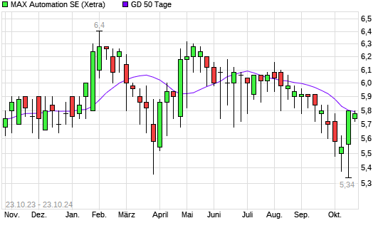 Mit dem Rücksetzer auf 5,74 EUR hat die MAX Automation-Aktie am 22.10.2024 die 50-Tage-Linie nach unten gekreuzt.