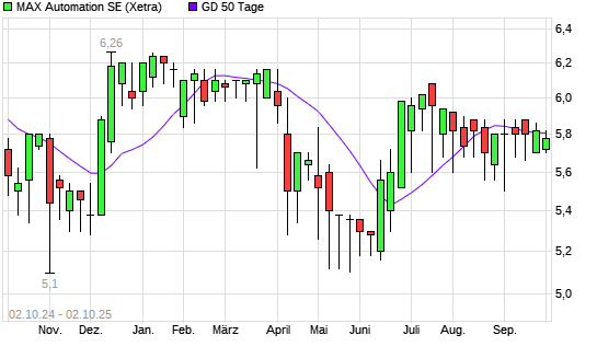 Mit dem Rücksetzer auf 5,74 EUR hat die MAX Automation-Aktie am 01.10.2025 die 50-Tage-Linie nach unten gekreuzt.