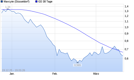 Mit dem Rücksetzer auf 0,63 EUR hat die MAXCYTE-Aktie am 18.03.2026 die 38-Tage-Linie nach unten gekreuzt.Der Abstand zur 200-Tage-Linie beträgt ...weiterlesen