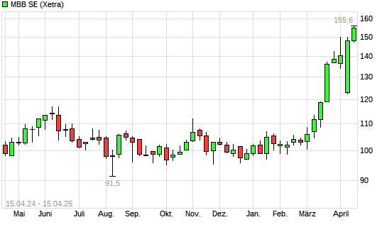 Mit dem Anstieg auf 153,00 EUR hat die MBB-Aktie (ISIN DE000A0ETBQ4) am 14.04.2025 ein neues All-Time-High erreicht und damit den Kurs vom 02.04.2025 eingestellt.