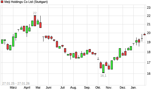 Mit dem Anstieg auf 19,80 EUR hat die MEIJI Holdings Co-Aktie (ISIN JP3918000005) am 26.01.2026 ein neues 6-Monats-Hoch erreicht und damit den Kurs vom 20.01.2026 eingestellt.