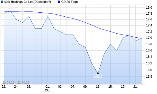 Mit dem Rücksetzer auf 17,10 EUR hat die MEIJI Holdings Co-Aktie am 21.10.2025 die 20-Tage-Linie nach unten gekreuzt.