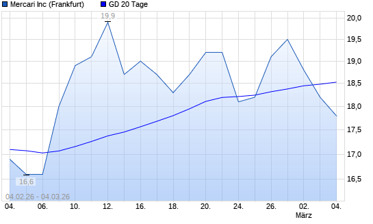 Mit dem Rücksetzer auf 18,20 EUR hat die MERCARI-Aktie am 03.03.2026 die 20-Tage-Linie nach unten gekreuzt.