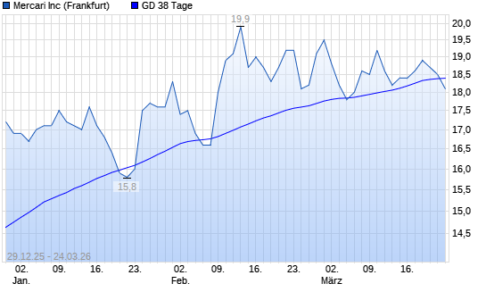 Mit dem Rücksetzer auf 18,10 EUR hat die MERCARI-Aktie am 23.03.2026 die 38-Tage-Linie nach unten gekreuzt.
