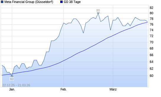Mit dem Rücksetzer auf 77,00 EUR hat die META FINANCIAL GROUP-Aktie am 20.03.2026 die 38-Tage-Linie nach unten gekreuzt.Die META FINANCIAL GROUP-Aktie befindet sich seit ...weiterlesen