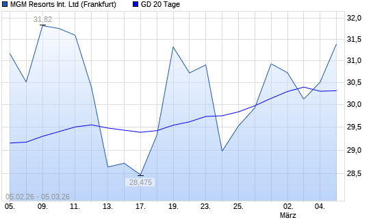Mit dem Anstieg auf 30,51 EUR hat die MGM Resorts International-Aktie am 04.03.2026 die 20-Tage-Linie nach oben gekreuzt.