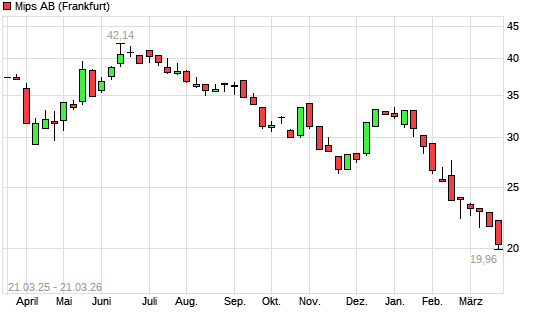 Mit dem Rücksetzer auf 20,26 EUR hat die MIPS Registered-Aktie (ISIN SE0009216278) am 20.03.2026 ein neues 5-Jahres-Tief erreicht und damit den Kurs vom 19.03.2026 eingestellt.