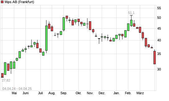 Mit dem Rücksetzer auf 33,80 EUR hat die MIPS Registered-Aktie (ISIN SE0009216278) am 03.04.2025 ein neues 6-Monats-Tief erreicht und damit den Kurs vom 31.03.2025 eingestellt.