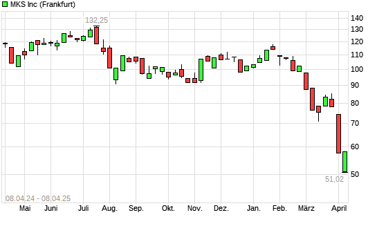 Mit dem Rücksetzer auf 51,02 EUR hat die MKS Instruments-Aktie (ISIN US55306N1046) am 07.04.2025 ein neues 5-Jahres-Tief erreicht und damit den Kurs vom 04.04.2025 eingestellt.