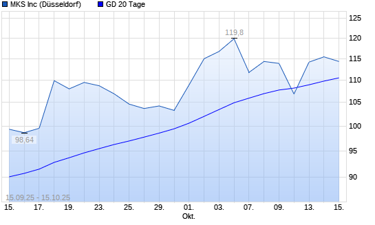 Mit dem Anstieg auf 112,80 EUR hat die MKS Instruments-Aktie am 14.10.2025 die 20-Tage-Linie nach oben gekreuzt.