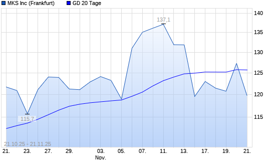 Mit dem Anstieg auf 127,30 EUR hat die MKS Instruments-Aktie am 20.11.2025 die 20-Tage-Linie nach oben gekreuzt.