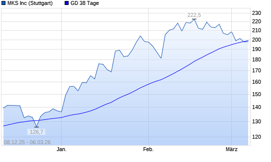Mit dem Anstieg auf 201,20 EUR hat die MKS Instruments-Aktie am 05.03.2026 die 38-Tage-Linie nach oben gekreuzt.