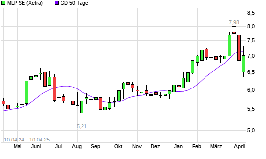 Mit dem Anstieg auf 7,17 EUR hat die MLP-Aktie am 09.04.2025 die 50-Tage-Linie nach oben gekreuzt.